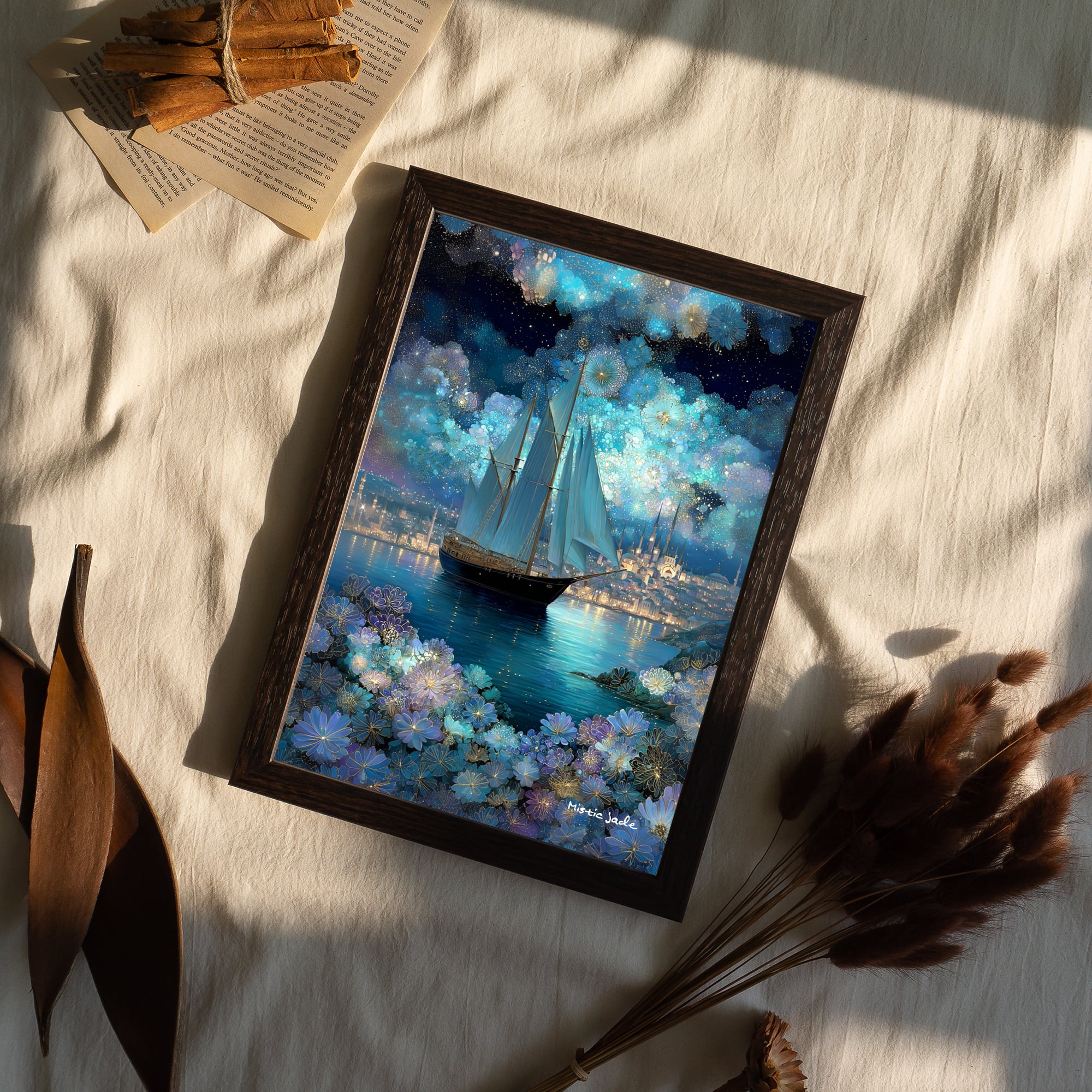 嵐の夜、船は光の渦に包まれ、彼は星の精霊に導かれて消えました。