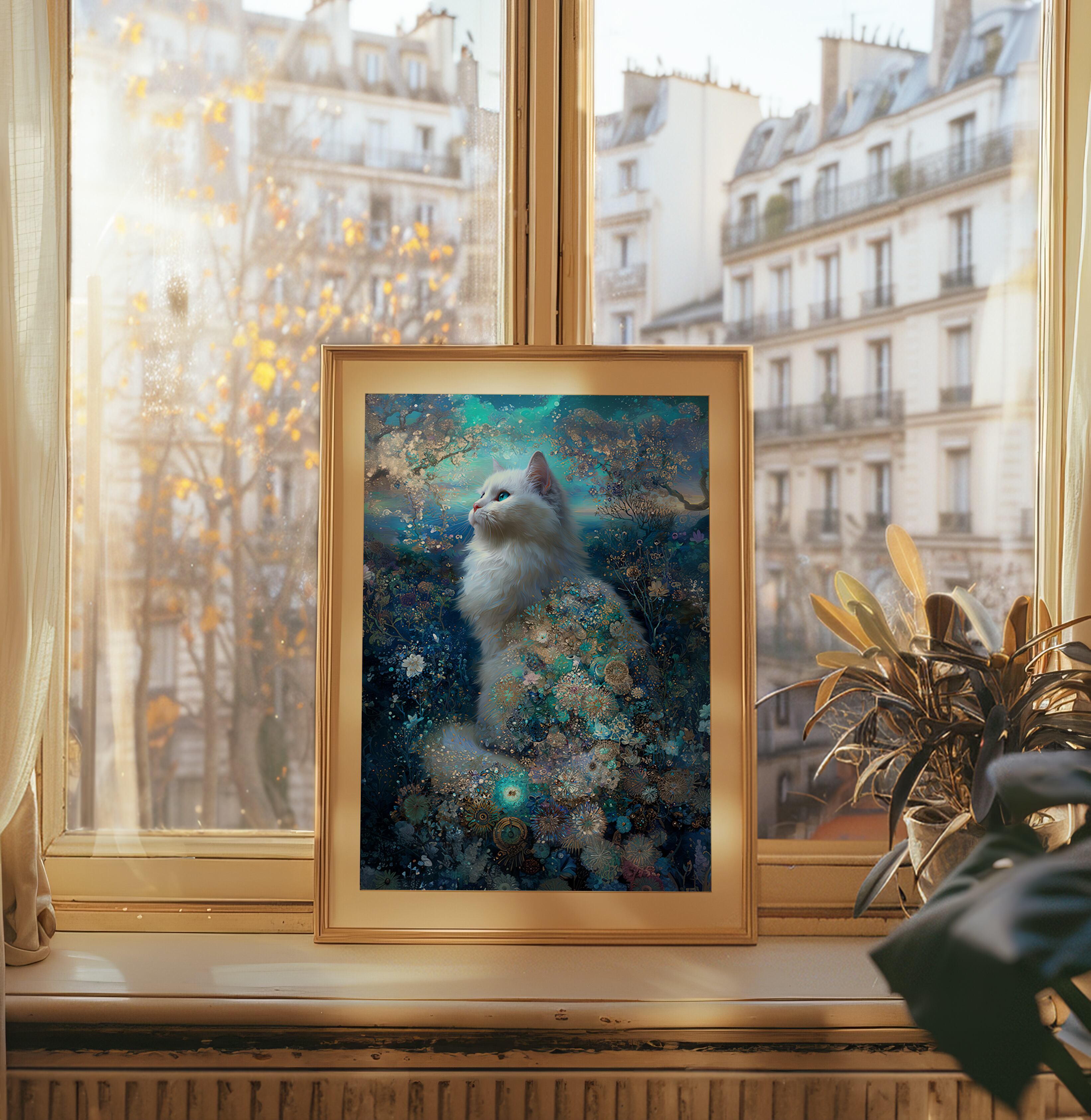 疲れた心を包み込む、夜の守り手のようなアートポスターです。
