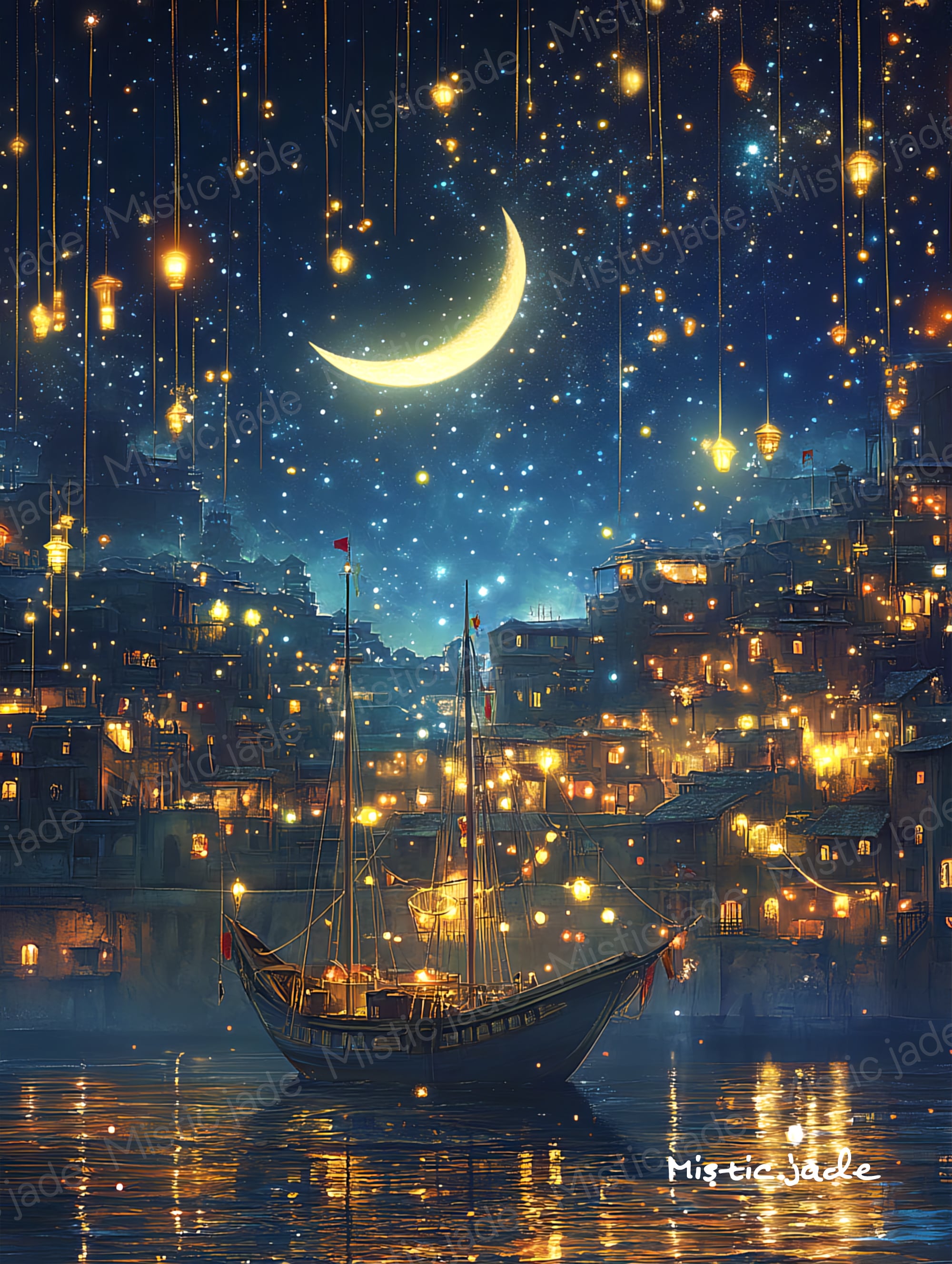 ⁂星空に包まれる幻想的な港町の風景ポスター⁂